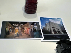Hoさんは、フルサイズデジカメの中では最小で最軽量と言われるSIGMA fpカメラに針穴を取り付けて銀座の街角とデパート内を1/30秒で手持ち撮影したカラー写真を披露。また、今年12月2日から5日間の会期で両国にあるPictoricoのギャラリーで個展をするとのお知らせがありました。展示するのは針穴写真ではありませんが、1979年にパリで撮ったカラー写真をモノクロ写真にプリントし直したものだそうです。 |