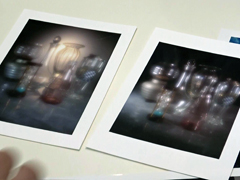 Maさんは、Sony Alphaにゾーンプレートを取り付けてガラスの器の集合体をカラーで撮っていますが、片方は金属的な輝き、もう片方は儚い夢のような描写というように、一見同一の被写体とは見えないほどの異なる表現を得ることに成功しています。 |